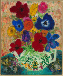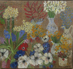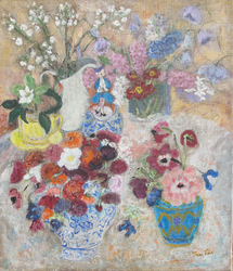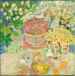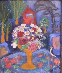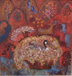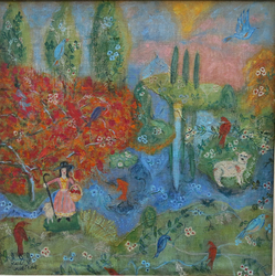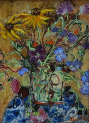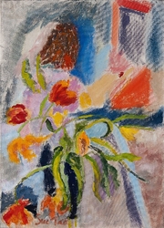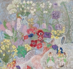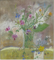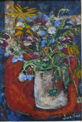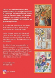 "In her vivacity, Sue Tait has discovered colour; a colour which does not simply decorate,amuse or scintilate but which somehow expresses the inner meaning of her subjects.Her new paintings are quirky reminders of joy discovered in simple things,flowers in corners,jungles or gardens of remembered experiences and surprises.