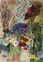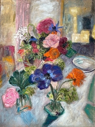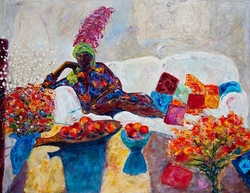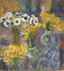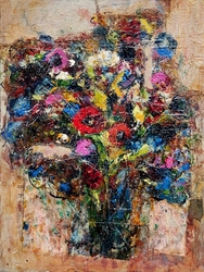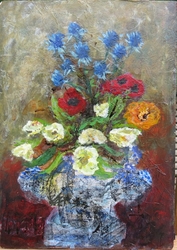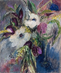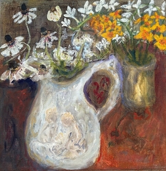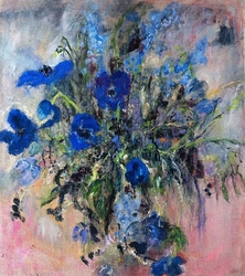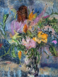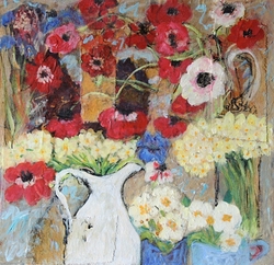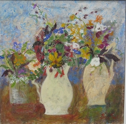 She delights in the pure materiality of things and echoes it in the sumptuous textures ,transclucency and richness of her pictures. They are a joyful splash of life seen through her intuitive and uninhibited expressiveness." Paul Martin, www.paulmartinstudio.com